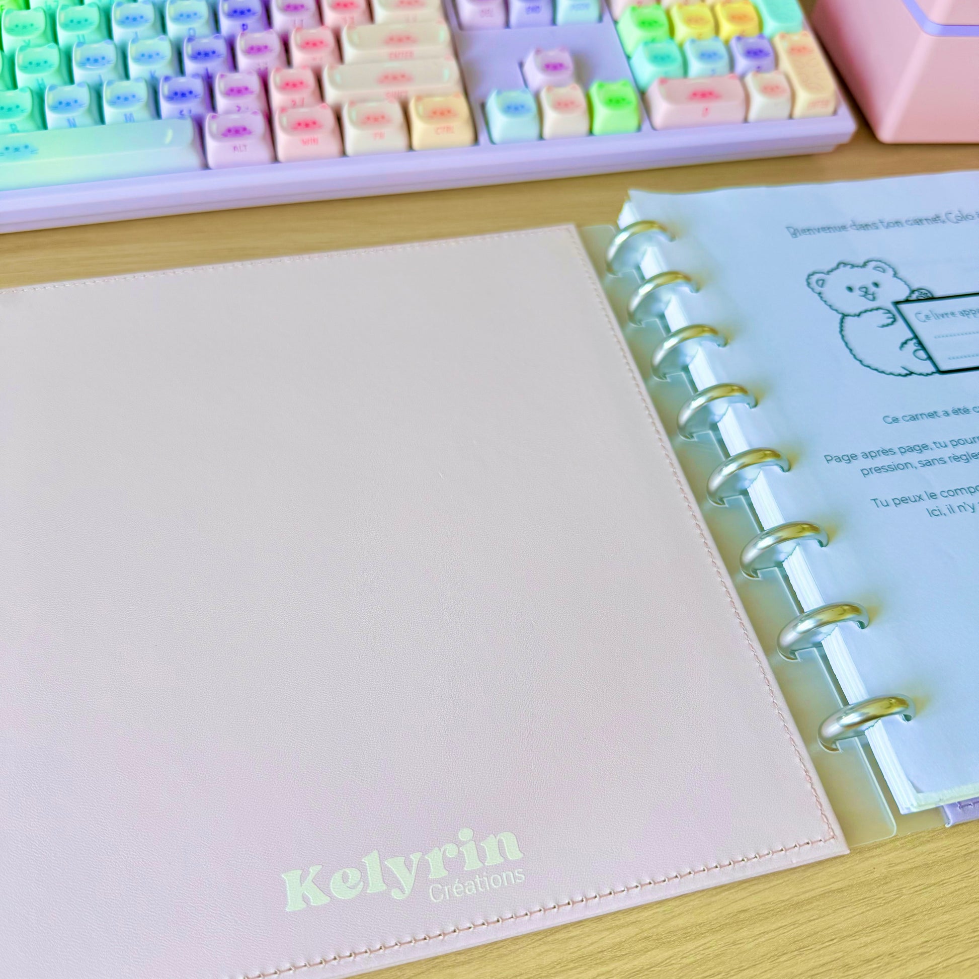 Un set de deux couvertures (avant et arrière) rigides rose pastel.