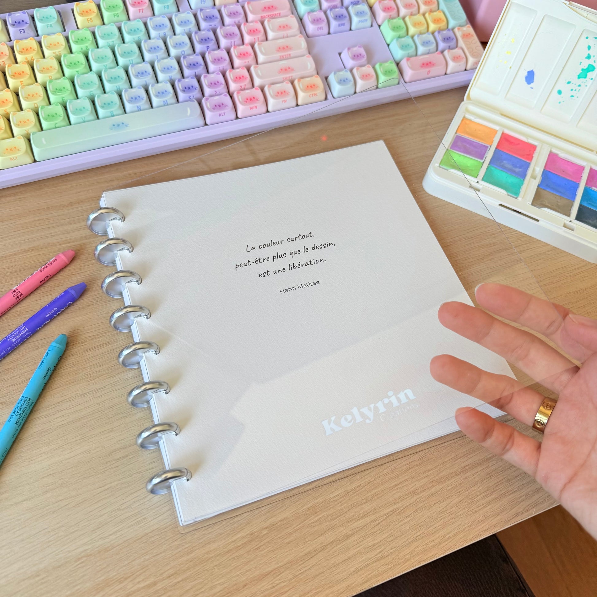 Pour une expérience parfaite dès la réception, chaque set inclut une belle page d'artiste sur papier aquarelle, avec une citation de Matisse sur la couleur. Elle se glisse derrière la couverture avant pour un rendu sobre et inspirant.
