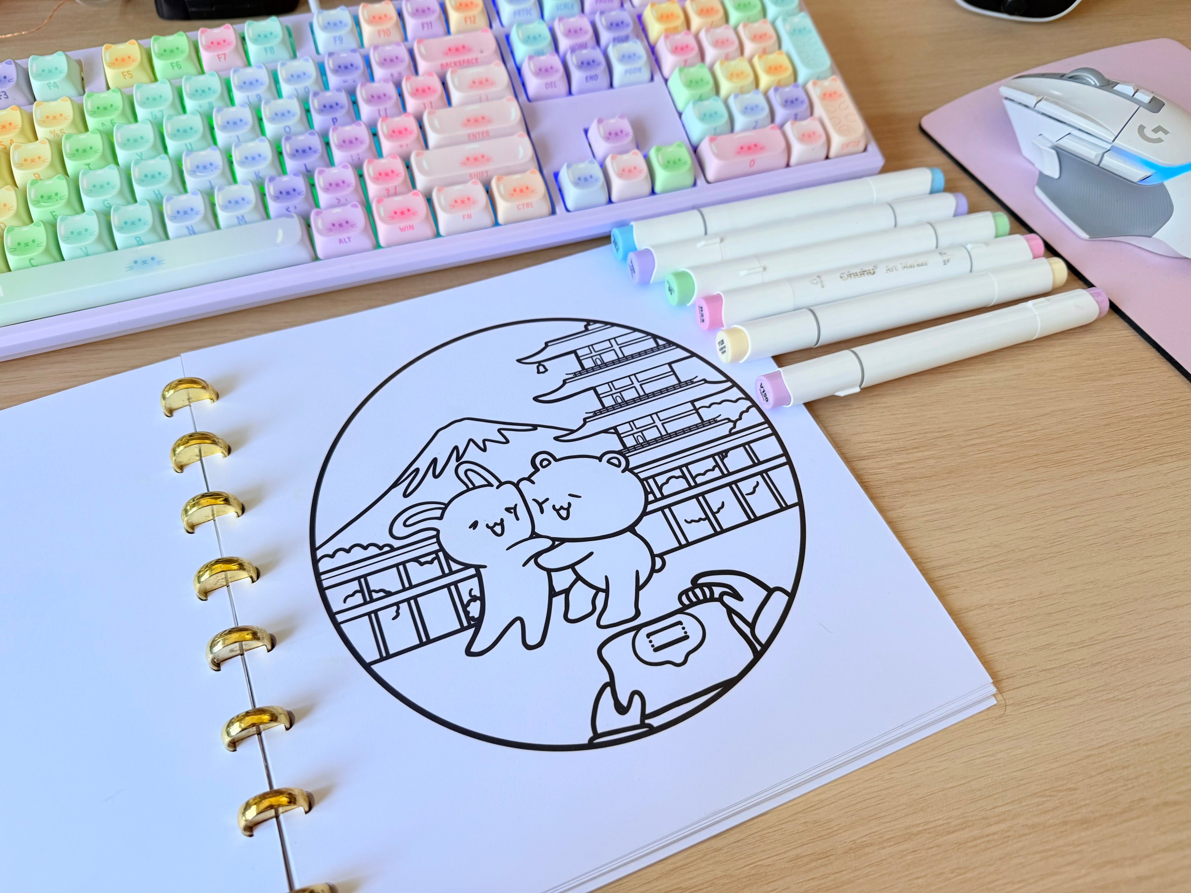 Chaque page a été dessinée par moi-même, à la main. Choisissez celles qui vous parlent, sur le papier de votre choix : filtrez par collection, par thème ou par coup de cœur, et composez un carnet qui ne ressemble qu’à vous… ou à la personne à qui vous l’offrez !